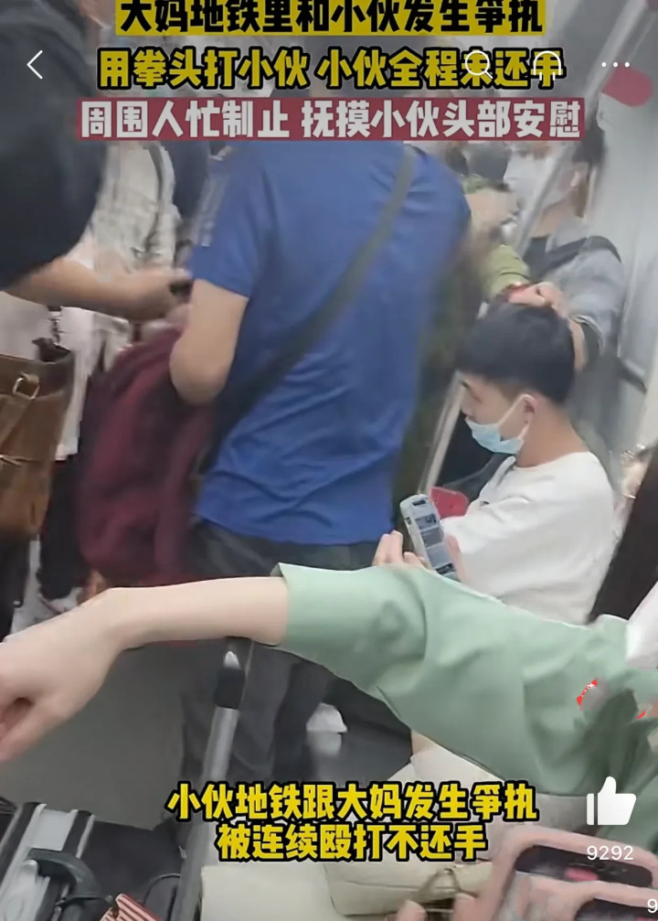 令人意外的是,在整个殴打过程中,小伙始终没有还手,也未进行阻挡,始终保持克制。周围乘客见状纷纷出面制止,地铁工作人员随后上车将涉事女子带离现场。工作人员询问小伙是否需下车协助处理,小伙只是摆手表示“不用”。